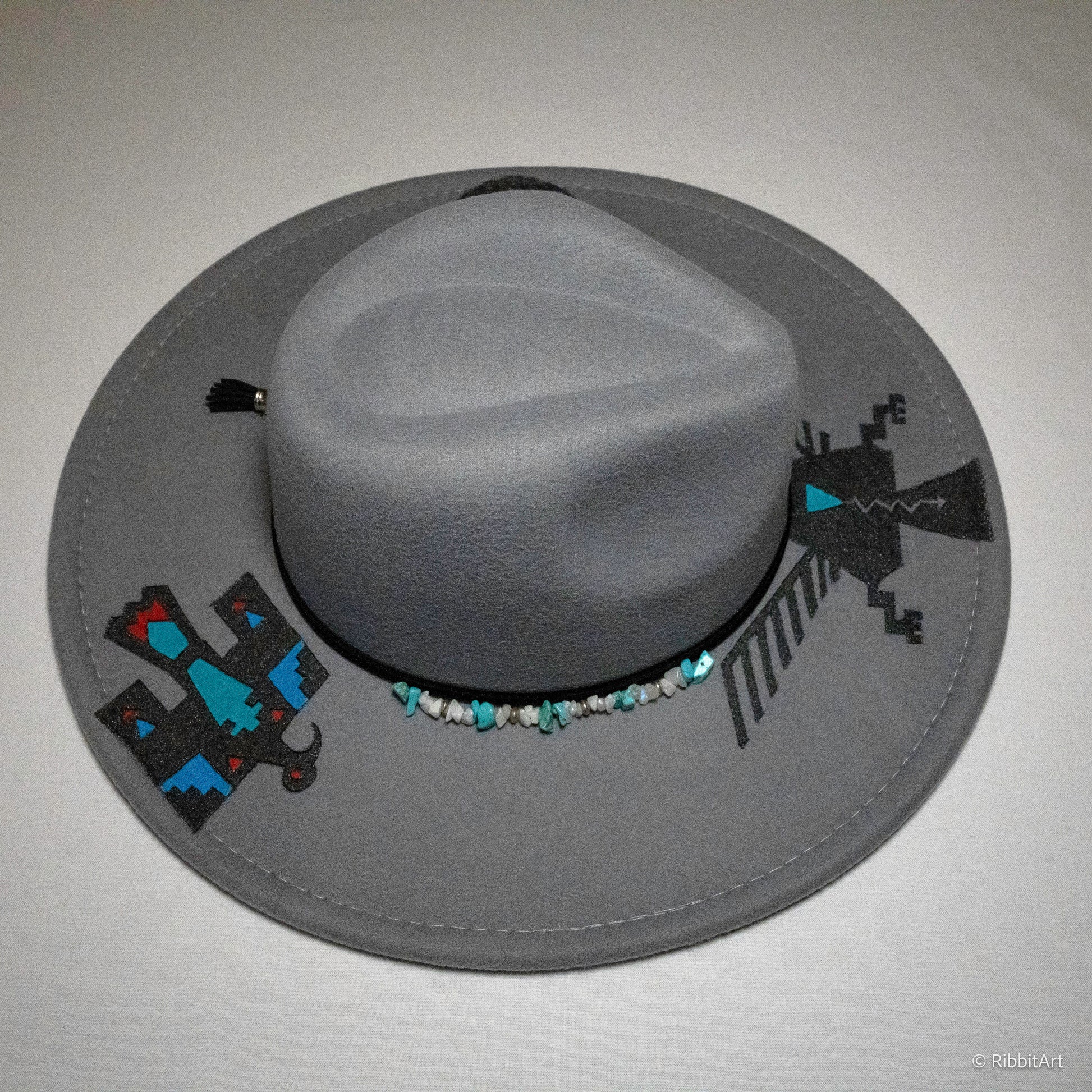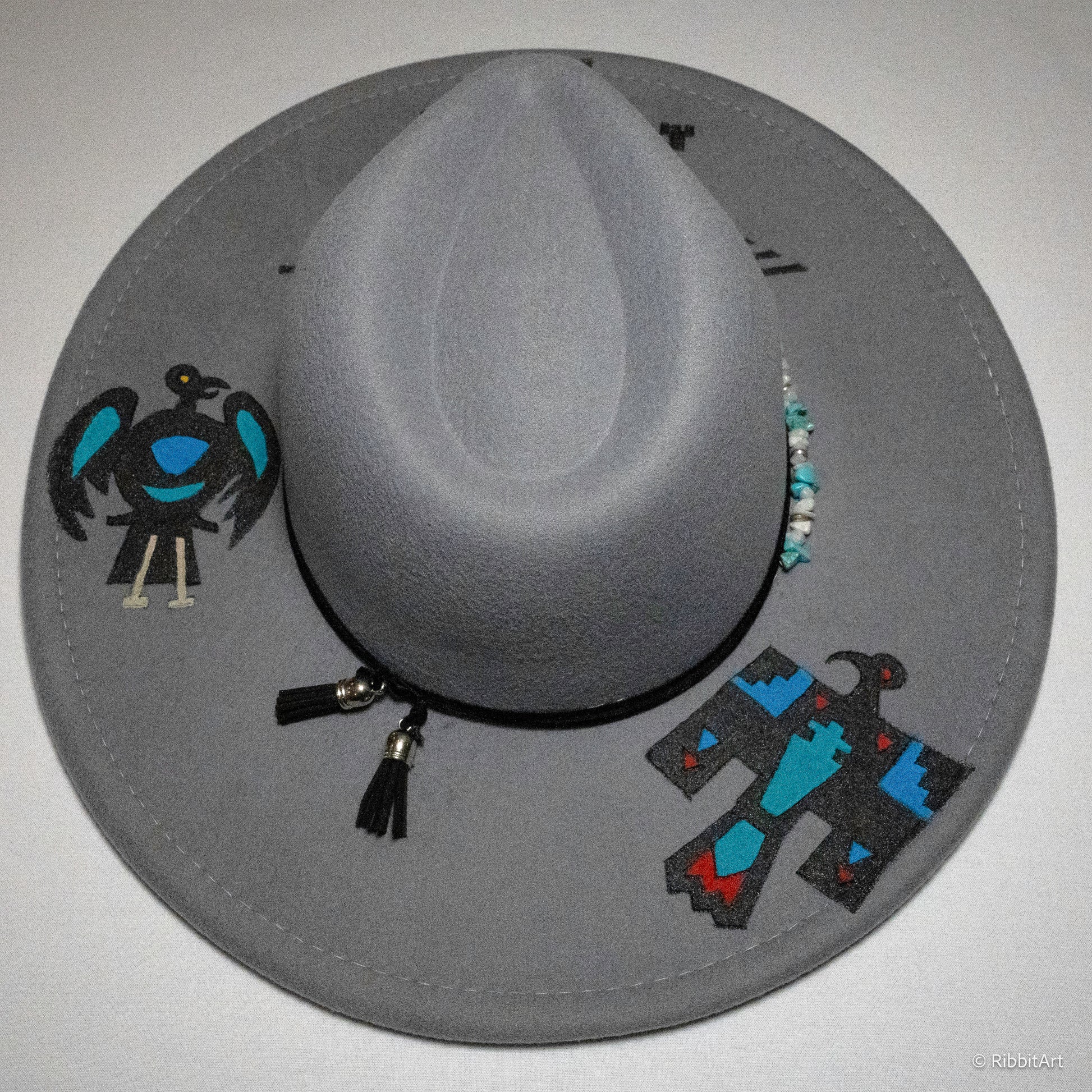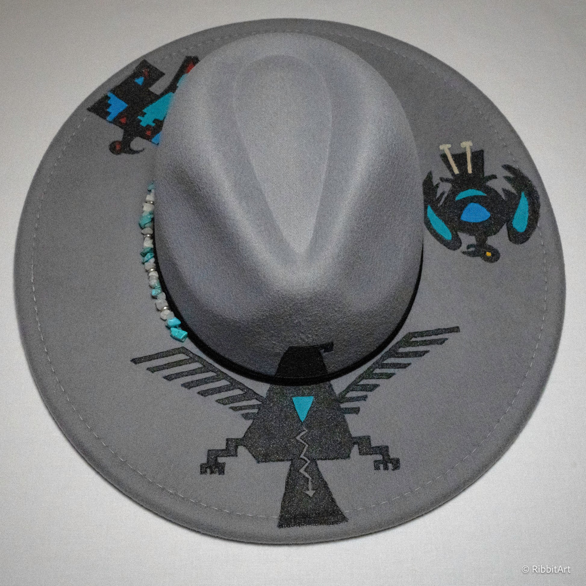 Hand-painted Native American design with different Thunderbirds. Turquoise, moonstone & silver beads.